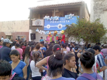 Paso de los Libres (12-8-12): Una verdadera multitud participó de la fiesta del “Día del Niño” organizada por el Frente para la Victoria de esta ciudad, más de 2000 personas, entre niños y adultos festejaron y se divirtieron en el playón del ferrocarril con juegos, peloteros, música y centenares de sorteos para los “únicos privilegiados”. La asistencia superó las expectativas y desde las primeras horas de la tarde comenzaron a llegar familias desde todos los puntos de la ciudad. La organización a cargo del PJ, PV, PF, Kolina, FORJA, Juventud Fraternal Peronista y Promotores Comunitarios fue perfecta y el evento se desarrolló con la más absoluta normalidad. Los niños vivieron una verdadera fiesta y seguramente el ejemplo dado por el FPV será motivo para que se realicen otros eventos similares tendientes solamente a lograr la felicidad de un niño.