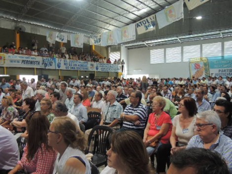 Corrientes (28-11-14): En un congreso en donde los ánimos caldeados competían con el agobiante calor dio comienzo el proceso electoral interno del PJ que realizará sus elecciones el próximo 29 de marzo del año venidero y en donde el presidente del PJ Fabián Ríos solicitará licencia a su cargo partidario junto a la vicepresidenta Nancy Sand a fin de competir en la interna, dejando a cargo del Secretario Gral. Camau Espínola la responsabilidad de organizar y llevar adelante el proceso electoral y para dejar de lado totalmente las sospechas y pedidos de transparencia en el mismo provenientes del sector camauista. La determinación de Ríos causó sorpresa en la multitud que colmó la sede de Luz y Fuerza, fue evidente su malestar al comprobar que desde el sector de Camau se pretendió hacer fracasar el congreso al dejarlo sin quórum legal, no dejando asistir a sus congresales. Logrado la mayoría necesaria de 101 congresales recién ahí ingresaron quienes permanecían afuera. La ausencia más notoria fue la del medallista quien fue citado a integrar la mesa principal en diversas oportunidades hasta comprobar su ausencia. “Voy a la interna para tratar de salvar la construcción política lograda en estos años, creí necesario llegar a consensos por un periodo más, pero las circunstancias obligan” expresaba con un dejo de desilusión al presentir que se podría dilapidar el capital político logrado en estos años.