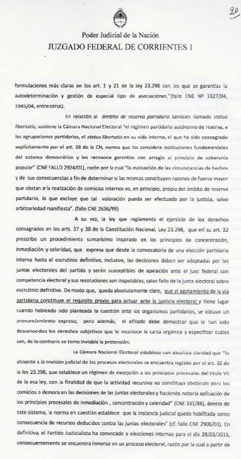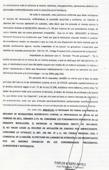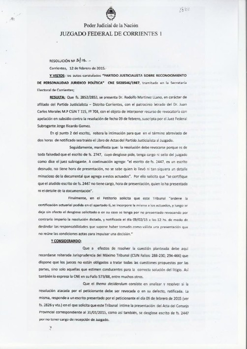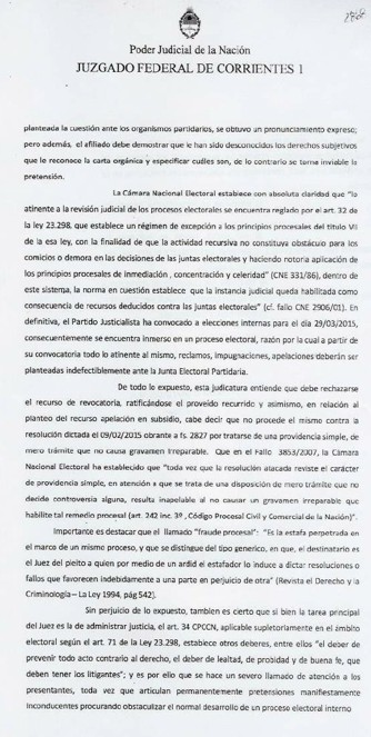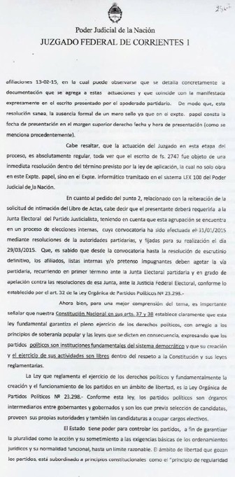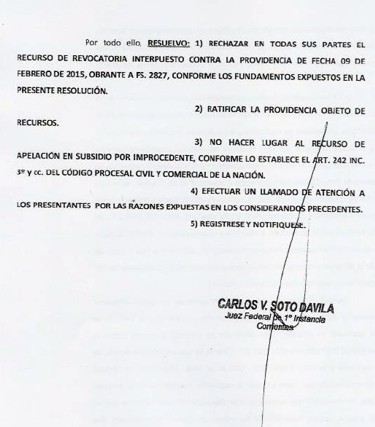 Corrientes (14-2-15): Mucho se dijo y seguramente mucho más se dirá sobre las pretensiones del ex senador expulsado, Rodolfo Martínez Llano, de desestabilizar el proceso interno del PJ por cuestiones estrictamente personales. Al respecto cabe destacar que todas las presentaciones efectuadas en el Juzgado Federal de Corrientes fueron rechazadas por el Juez Carlos Soto Dávila. Y como dijo en alguna oportunidad Rodolfo una foto vale más que mil palabras, en el Interior de la nota estan todas las resoluciones judiciales.