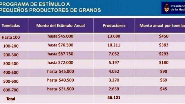 Se trata de un Fondo de Estímulo para unos 46 mil pequeños productores rurales, que se destinará a devolver parte de lo que pagan en retenciones a las exportaciones, tras llegar a un acuerdo con la Federación Agraria Argentina.