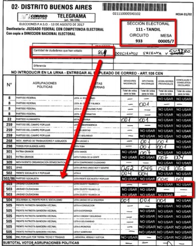 Bs. As. (16-8-17): Las irregularidades se multiplican en el conteo de votos en la provincia de Buenos Aires. Además de la manipulación de la información del escrutinio provisorio, pasa algo más grave: errores en los telegramas que tiene el Correo. Se constataron telegramas oficiales que difieren de las actas firmadas por los presidentes de mesa y fiscales, ya se encontraron 270 mesas en la que Unidad Ciudadana no tuvo ni un solo voto, hecho que claramente induce a pensar en un gran fraude organizado por el gobierno nacional.