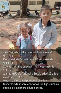Vale recordar que los tres menores identificados como L.D.I.V. (8), E.M.S (5) y Z.J. T. (1 año y 11 meses) desparecieron el domingo pasado de Yapeyú.