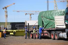 Yaciretá (19-6-23): Con nuevo equipamiento potencian la obra civil de mayor magnitud que se desarrolla en la región, conocida como la nueva Central Aña Cuá, que se encuentra dentro del Complejo Hidroeléctrico Yacyretá. Desde Brasil arribaron 36 camiones a Corrientes junto a un convoy de vehículos de gran porte, cargados con los componentes electromecánicos para las futuras unidades generadoras de la planta.