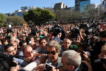 Nacionales | Bs. As. (8-8-13): Ante numerosos seguidores, el periodista salió del lugar de la audiencia de mediación con el CEO de Clarín y dijo: "Lamento no haberlo tenido cara a cara". "Espero que la Corte no siga de...
