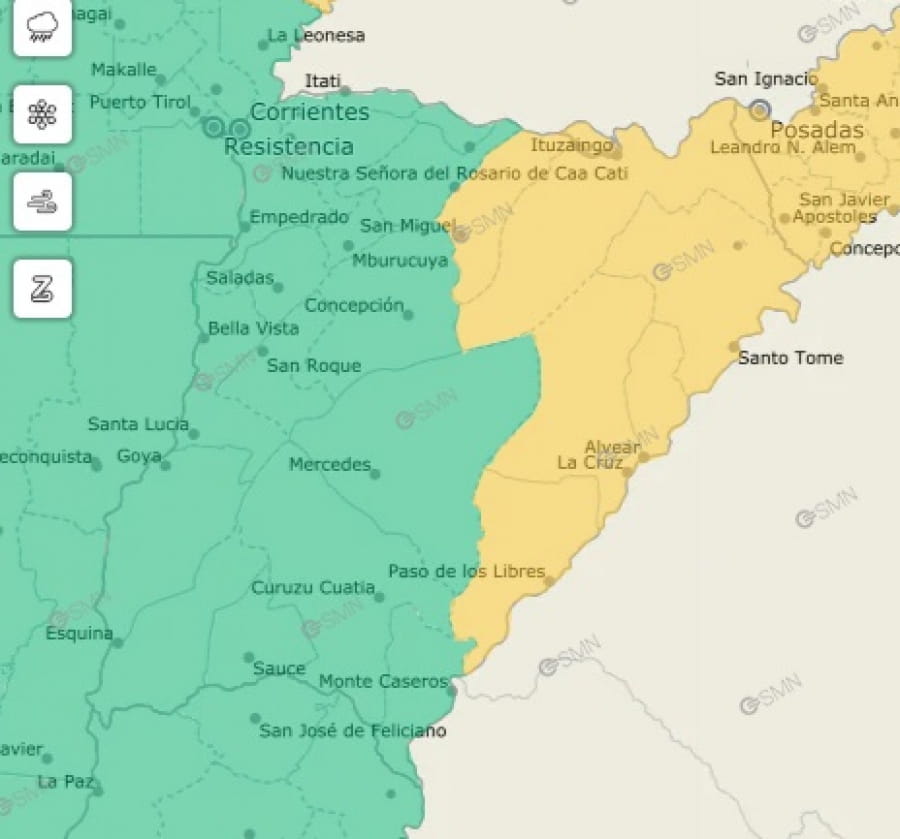 Rige alerta amarilla por fuertes tormentas en Paso de los Libres y varias localidades de Corrientes