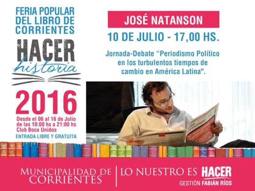 Provinciales | Corrientes (11-7-16): El director de la revista Le Monde Diplomatique, José Natanson, estuvo ayer en Corrientes en el marco de la Feria Popular del Libro. El periodista encabezó la jornada debate sobre “P...