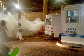 Nacionales | (5-12-19): Desde hace unos días, los pasos fronterizos son fumigados como medida preventiva ante la epidemia de dengue desatada en Paraguay y Brasil, en el marco de un bloqueo epidemiológico. De esta fo...
