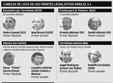 Provinciales | Corrientes (18-5-15): En Encuentro por Corrientes de 20 lugares, 12 fueron para radicales. En el Frente para la Victoria, 14 justicialistas son candidatos y sólo dos van por la reelección.