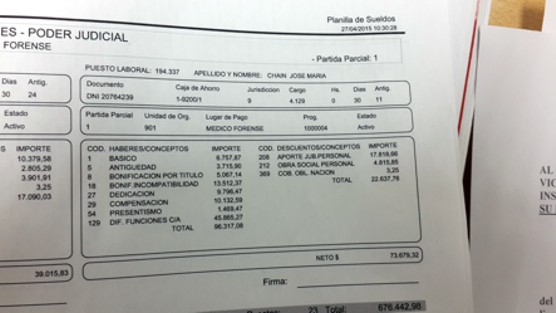 Provinciales | Corrientes (14-5-15): El hermano del Ministro del STJ Marcelo Chaín, el psiquiatra José María Chaín quien presta servicios en el Servicio Médico Forense, cobró de sueldo el mes pasado la insólita suma de m...