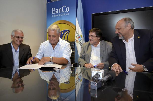 Provinciales | Corrientes (25-3-15): El intendente Fabián Ríos suscribió este miércoles 25 de marzo un convenio de colaboración y asistencia el presidente de la entidad bancaria Alejandro Abraham y autoridades del Gobier...