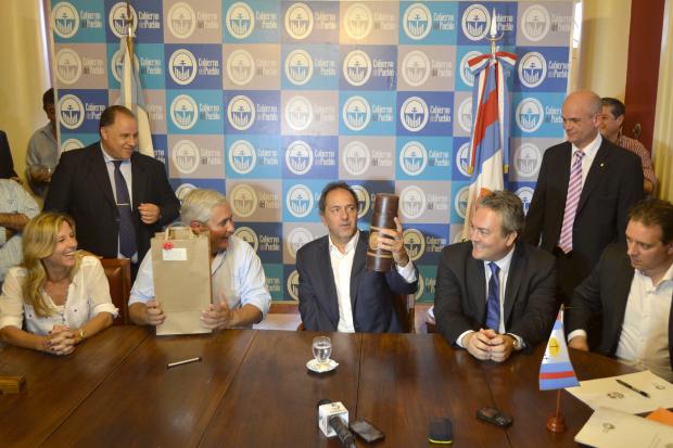 Provinciales | Corrientes (10-12-14): Tras la inauguración de la pavimentación de la calle México en el barrio Bañado Norte, el intendente Fabián Ríos y el gobernador de Buenos Aires Daniel Scioli suscribieron este marte...