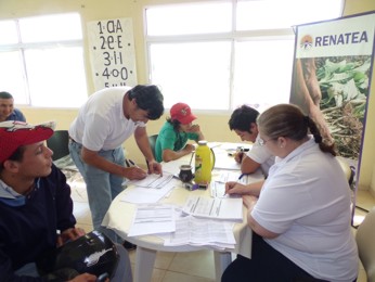 Provinciales | Santo Tomé (21-10-14): Personal del área de Registro y Prestaciones conjuntamente con la responsable de la Unidad Territorial local, ambos de la Delegación Corrientes del Registro Nacional de Trabajadores ...