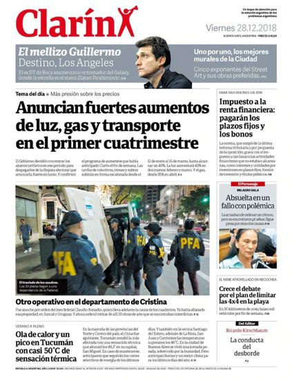 Nacionales | Bs. As. (28-12-18): CFK se expresó sobre el allanamiento a su domicilio y señaló que se trata de una maniobra para tapar los tarifazos. Son “de manual”, dijo. Apuntó a Cambiemos, Bonadio y el Grupo Clarín....