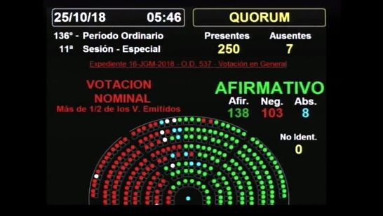 Nacionales | Bs. As. (25-10-18): Luego de casi 18 horas de iniciada la sesión, el oficialismo logró aprobar el plan diseñado por el Fondo Monetario Internacional. La palabra final la tiene el Senado.