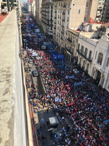Nacionales | Bs. As. (7-9-18): Una multitud marcha en la Ciudad de Buenos Aires, lo que paralizó el tránsito en la avenida 9 de Julio. La policía amenaza con reprimir la protesta si avanza al Congreso.