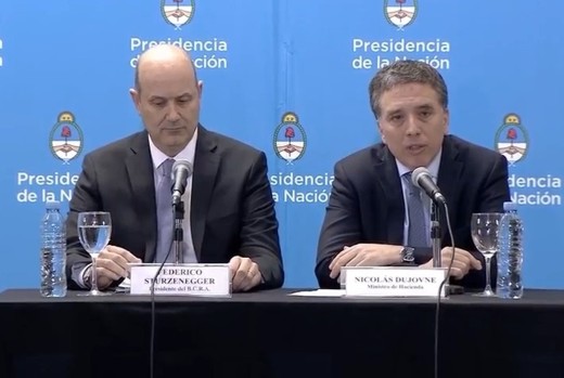Nacionales | Bs. As. (8-6-18): El ministro de Hacienda, junto al titular del Banco Central, Federico Sturzenneger, anunciaron el acuerdo con el Fondo Monetaria Internacional por un préstamo total de 50 mil millones de ...