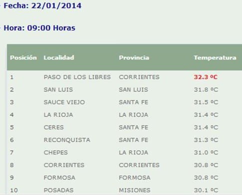Según el ranking del Servicio Meteorológico de las ciudades más calurosas de las provincias, Paso de los Libres se ubicó a las 9 de la mañana en el primer puesto con 32.3º y la sensación termi...