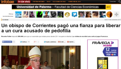 Provinciales | Corrientes (18-11-13): El portal Info Bae colocó en portada el pago por parte del Arzobispado de Goya de una caución para liberar a Domingo Pacheco, un sacerdote de 45 años de edad que estaba preso desde 2...