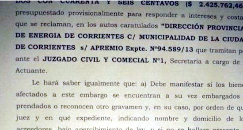 Provinciales | Corrientes (4-10-13): Oficiales de Justicia de Tribunales se encuentran en el domicilio de la Municipalidad de Corrientes, para proceder a trabar embargo por un reclamo de la entidad energética. El mandami...