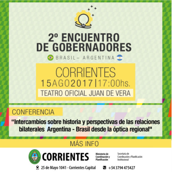 Nacionales | Corrientes (15-8-17): Hoy martes, 15 de agosto, Corrientes recibirá a gobernadores de Argentina y Brasil, quienes se reúnen por segunda vez en el año para apuntalar el "Plan de Acción" acordado por los pre...