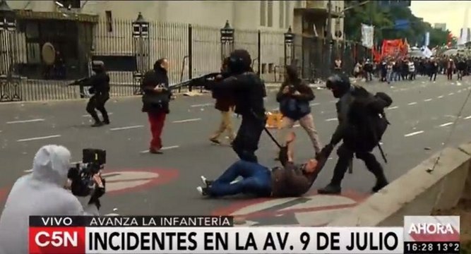 Nacionales | Bs. As. (28-6-17): Organizaciones sociales cortaban avenida Belgrano y 9 de Julio, instalando carpas y ollas populares en reclamo de que los reciba la ministra Stanley. La policía desató una feroz represió...