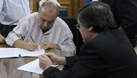 Provinciales | Corrientes (30-5-13): Referentes del gremio de Luz y Fuerza, encabezados por Jorge Ovando, firmaron esta siesta un acuerdo salarial que debería dar fin al conflicto suscitado con trabajadores de la DPEC. E...