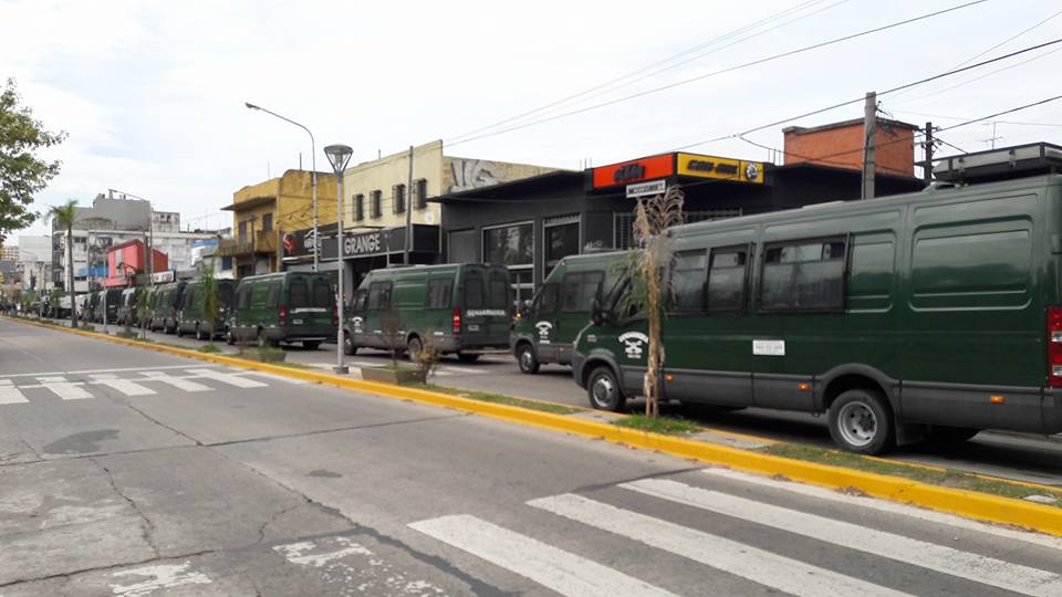 Nacionales | Bs. As. (17-4-17): Fueron 14 móviles de las fuerzas militares las que llegaron hasta el paso a nivel de Medrano y Rivadavia para amedrentar el reclamo por 90 trabajadores del personal de maestranza del fer...