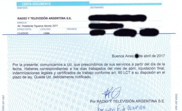 Nacionales | Bs. As. (13-4-17): Telegramas de despido llegaron a los domicilios de las cabezas que dirigían las filiales que la radio pública tiene esparcidas por las provincias argentinas, garantizando la llegada de l...