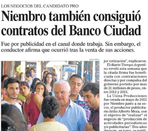 Nacionales | Bs. As. (6-9-15): La empresa vinculada al candidato a diputado del PRO le facturó, con procedimientos irregulares, $21 millones al gobierno porteño y firmó un contrato con el Banco Ciudad.