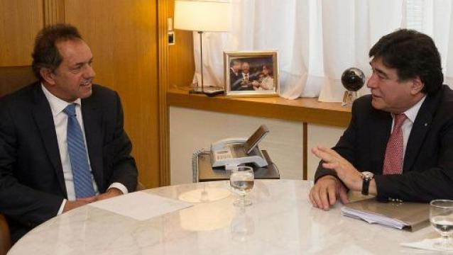 La dupla que integra la fórmula del Frente para la Victoria, Daniel Scioli -gobernador de la provincia de Buenos Aires-, y Carlos Zannini -actual secretario de Legal y Técnica de la Na...
