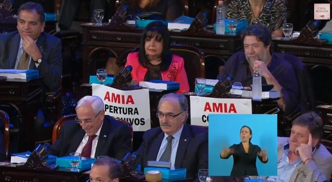 Nacionales | Bs. As. (1-3-15): La Presidenta respondió duramente a los carteles que presentaron diputados opositores con consignas por el atentado a la AMIA.