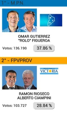 Nacionales | Neuquen (27-4-15): Con más del 96% escrutado, Omar Gutiérrez se impuso en las elecciones generales provinciales y será el sucesor de su copartidario, el gobernador Jorge Sapag. El candidato del FPV logró ...