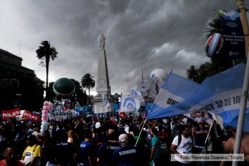 Nacionales | Bs. As. (13-12-14): A pesar de la tormenta, después de soportar las primeras lluvias de la tarde y resguardarse en los laterales, los manifestantes vuelven a disfrutar de la jornada que será cerrada cerca ...