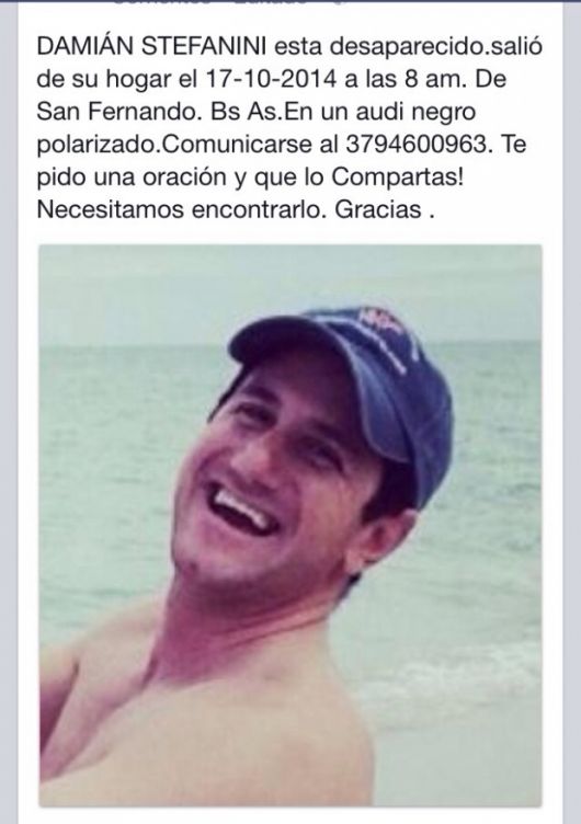 Nacionales | Bs. As. (26-10-14). Una nueva pista sacude la investigación sobre el paradero de Damián Stefanini, el empresario que desapareció en la mañana del viernes 17 de octubre cuando se fue a trabajar. Se trata de...
